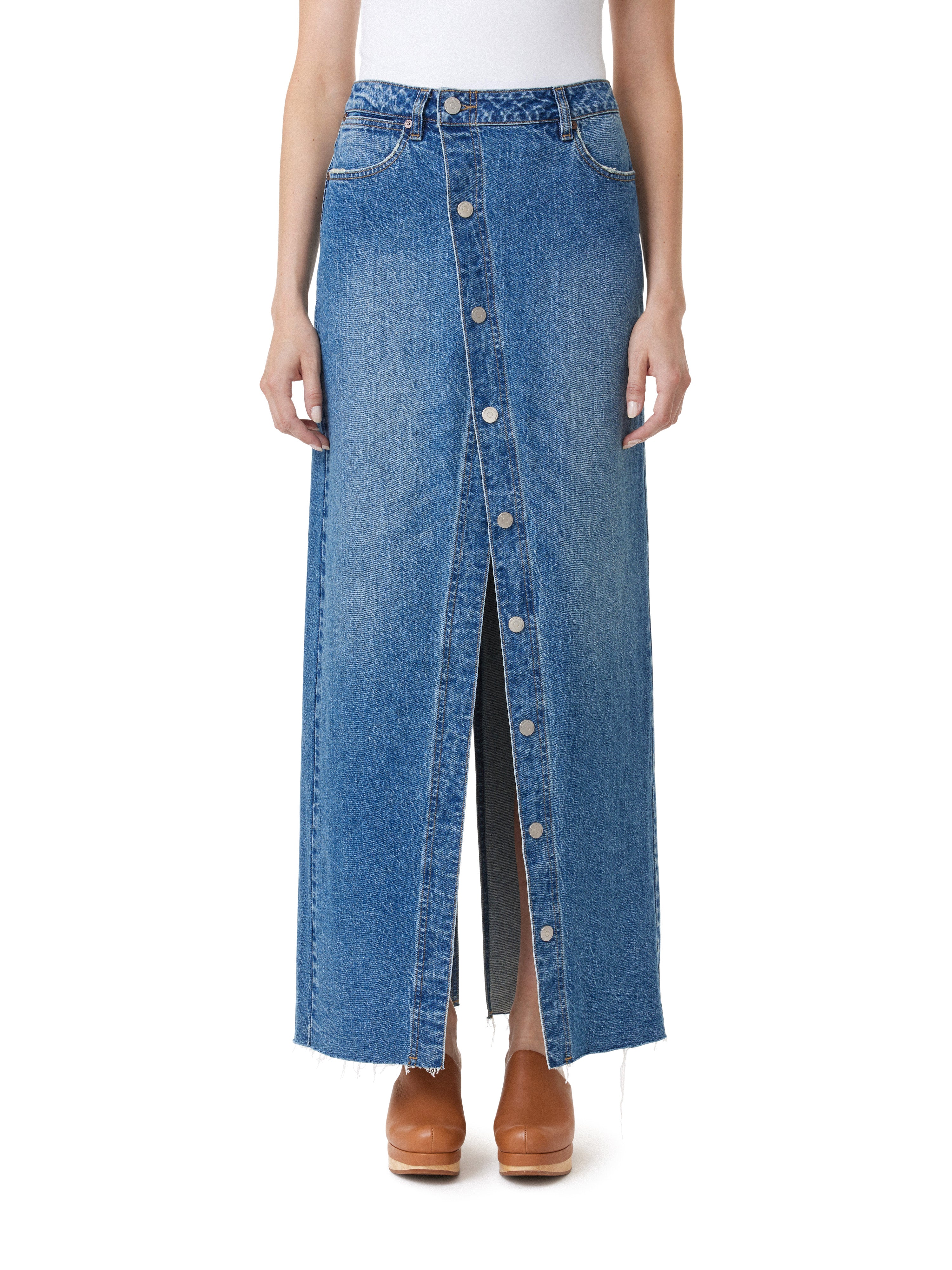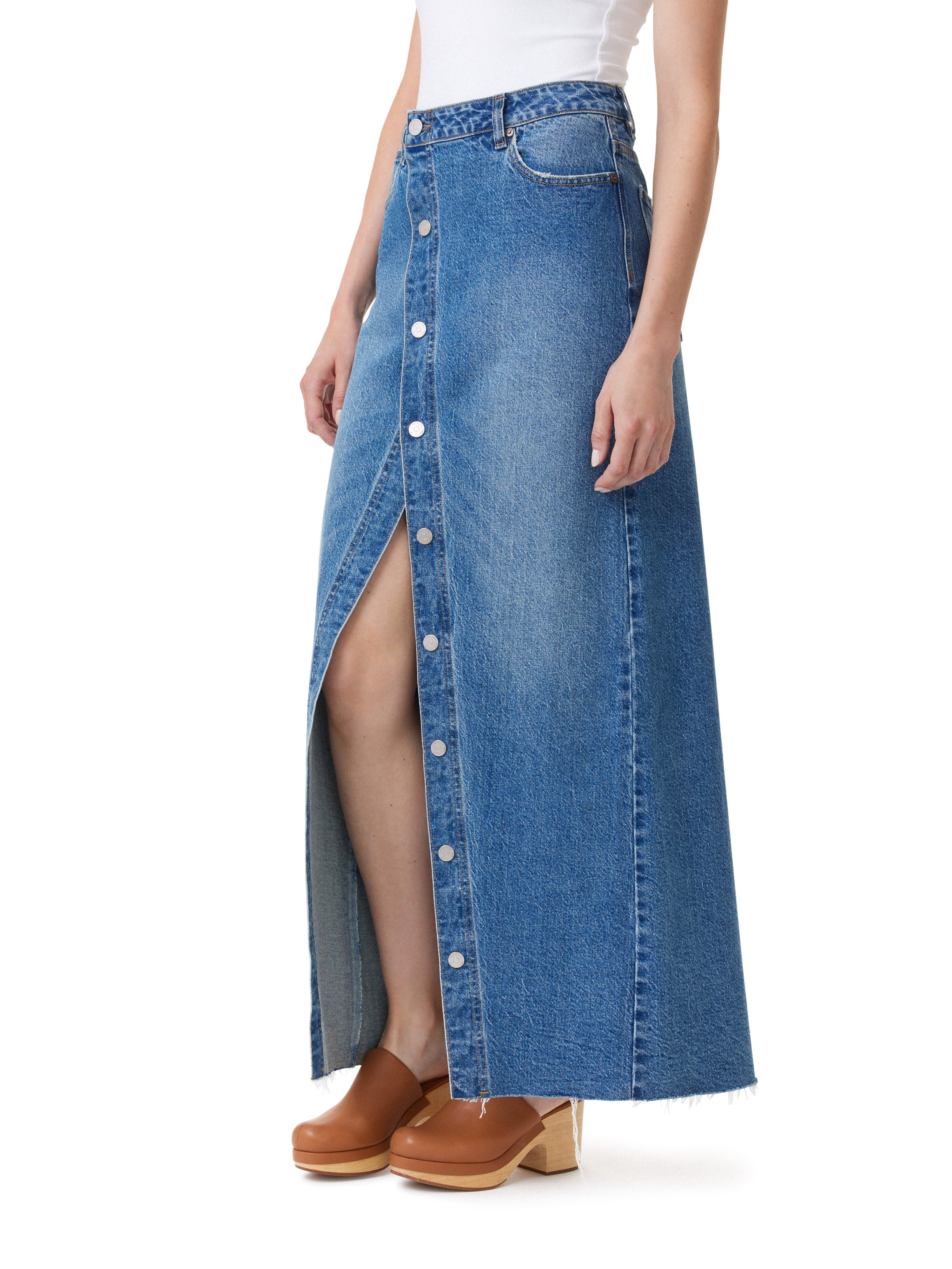 Button Down Maxi Denimi Skirt